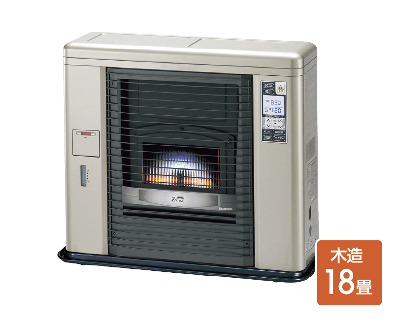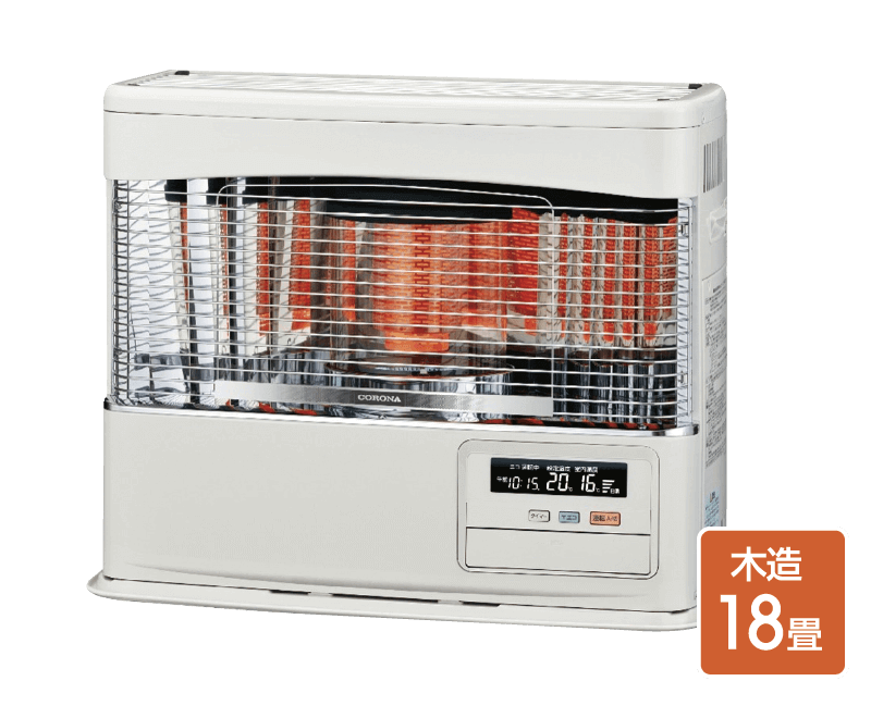 コロナFF式暖房機器の最高峰。優れた暖房性能と美しいスタイルを実現。遠赤外線輻射量が約15%アップし、身体のしんまでしっかりと温めてくれます。