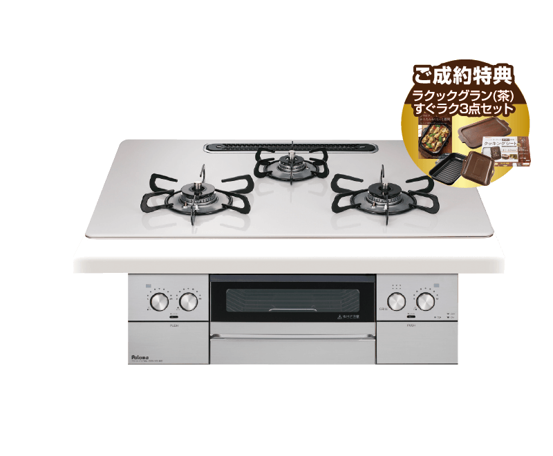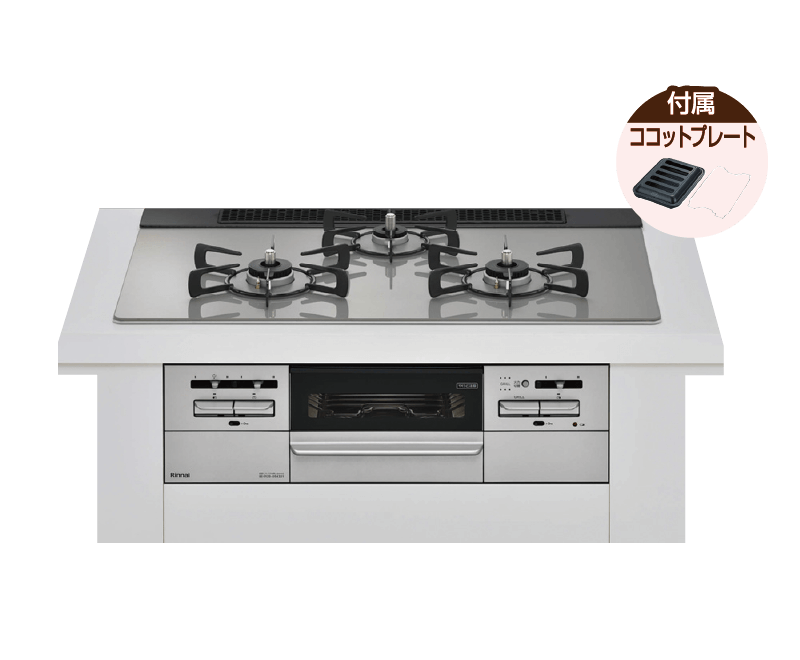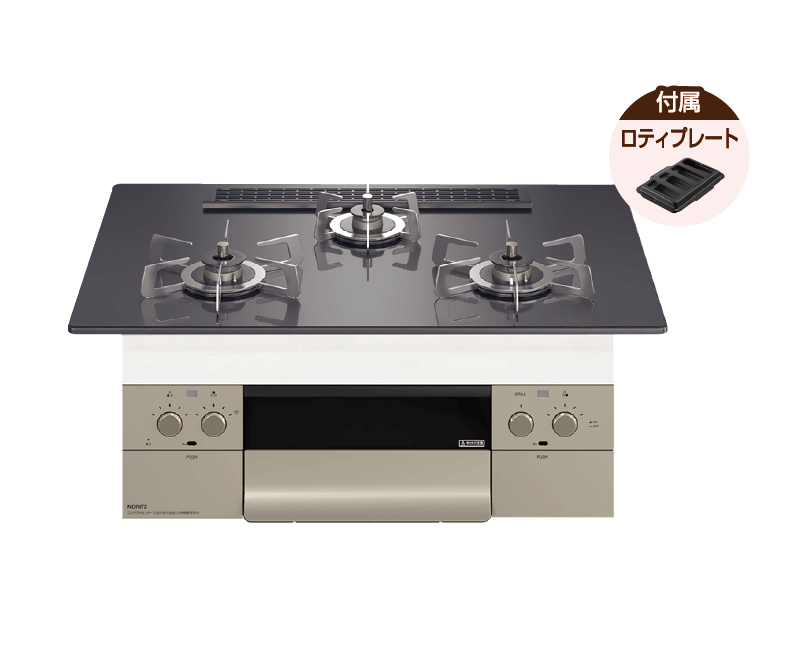 メリット → 硬質ホーローにガラスコーティングを施した天板。清掃性が高く、強い衝撃を受けても割れる心配がありません。カラーバリエーションが豊富で、ガラストップよりも安価で購入できます。